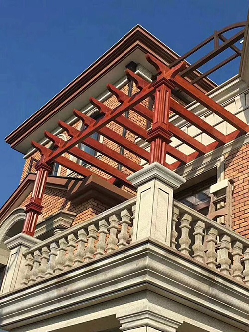 铝合金仿葡萄架,休闲凉亭,似木非木,远胜于木,整体拼接,美观高档,木纹逼真,防虫蛀,不开裂,不变形,不老化使用寿命长达50年,便于清洁,免去每年大笔维护费用