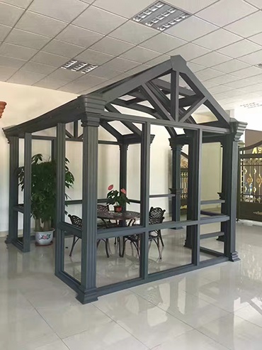 亭台式铝合金阳光房的设计一般设计在户外,独立于房子,顶上呈钻石顶,形状一般呈4方状,6角状,8角状,或园形状,其视野开阔,造型醒目,阳光充足,光线明亮,用途广泛。